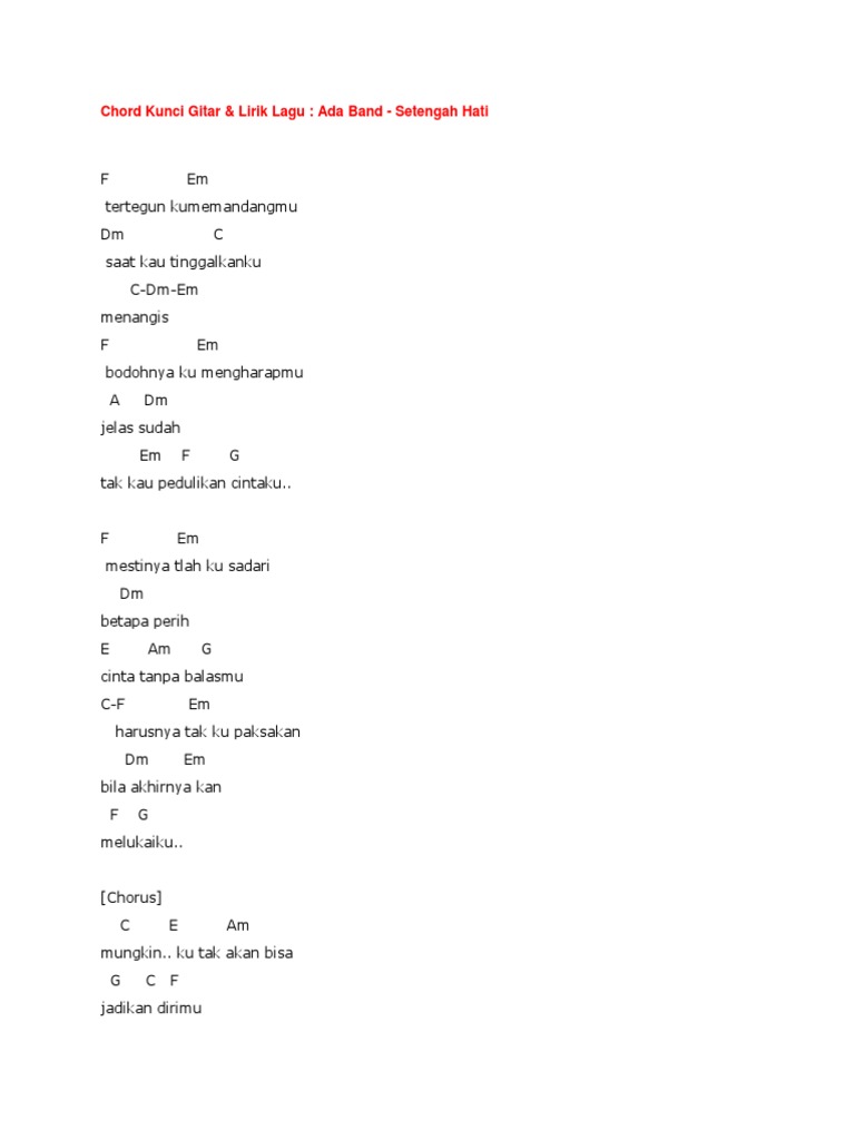 Chord Dan Lirik Lagu Ada Band Setengah Hati By Chord Zila Issuu