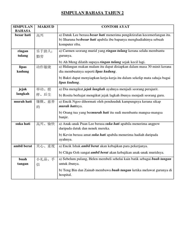 Contoh Ayat Simpulan Bahasa Tahun 2