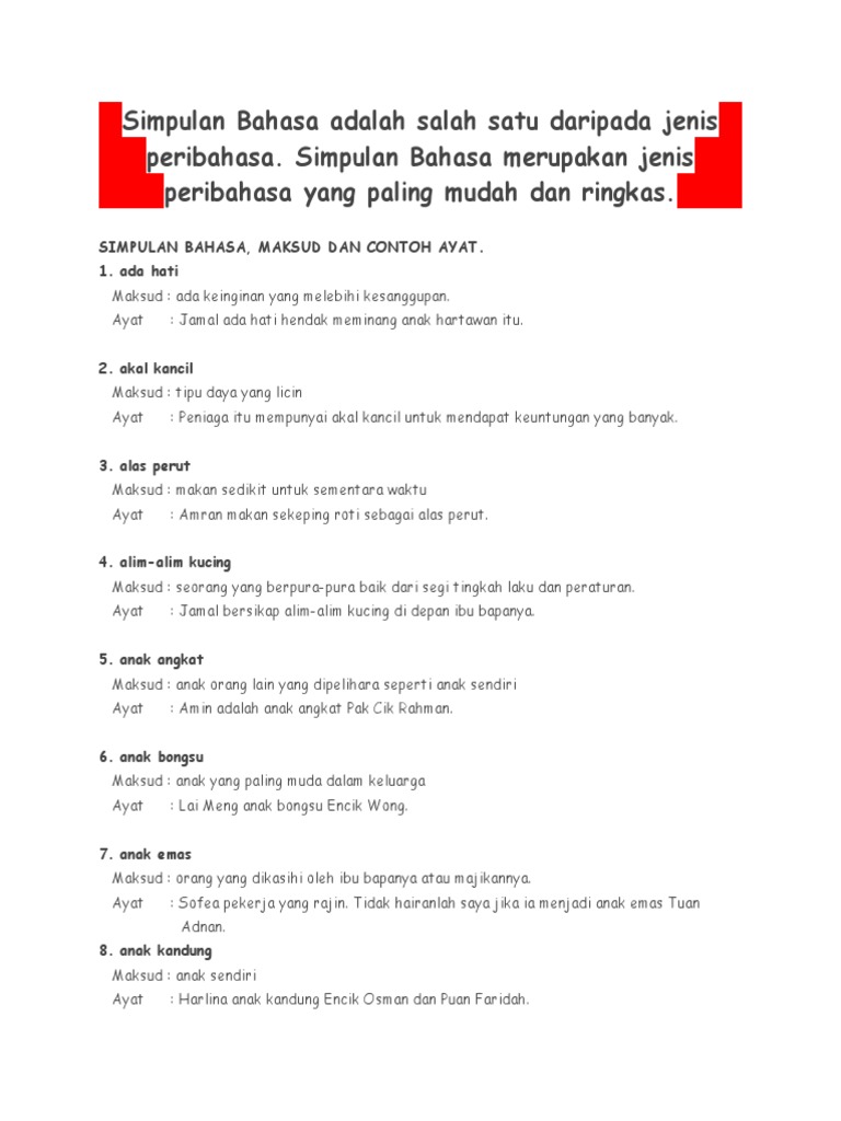 36 Contoh Ayat Simpulan Bahasa