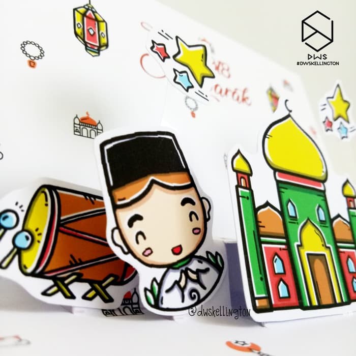 Ddlw271 Kartu Lebaran Doodle Eid Mubarak Kartu Ucapan Idul Fitri