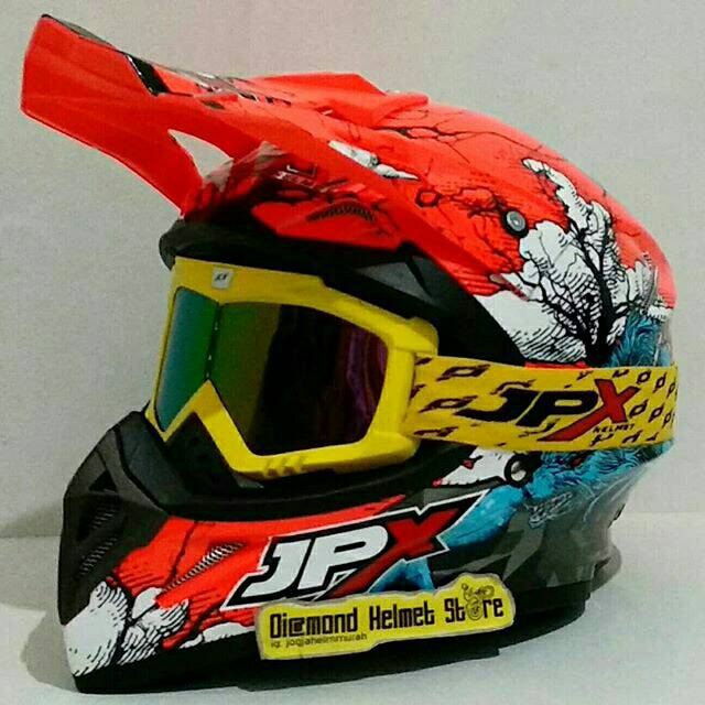 Paket Helm Cross Jpx Werewolf Red Fluo Goggle Jpx Yellow Rainbow