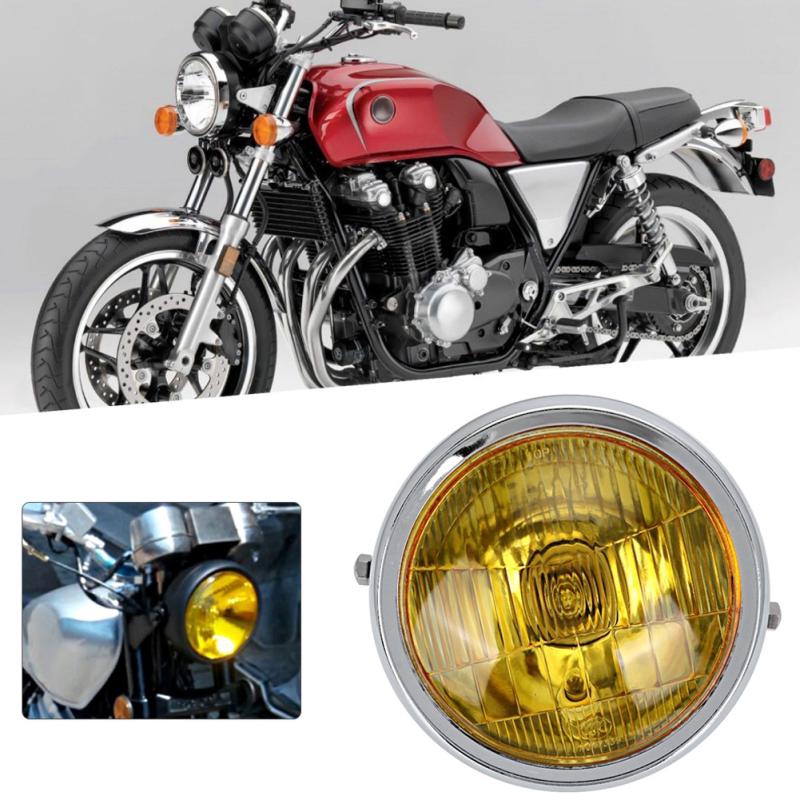 Lampu Depan Sepeda Motor Retro Bentuk Bulat Warna Kuning Untuk