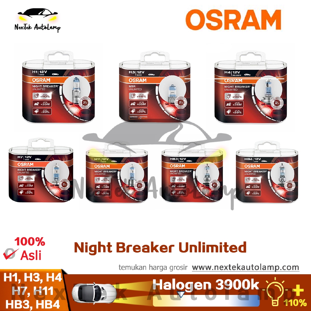 Osram Night Breaker Unlimited H1 H3 H4 H7 H11 Hb3 Hb4 Car Halogen