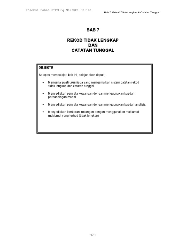 Perakaunan Rekod Tak Lengkap Catatan Tunggal