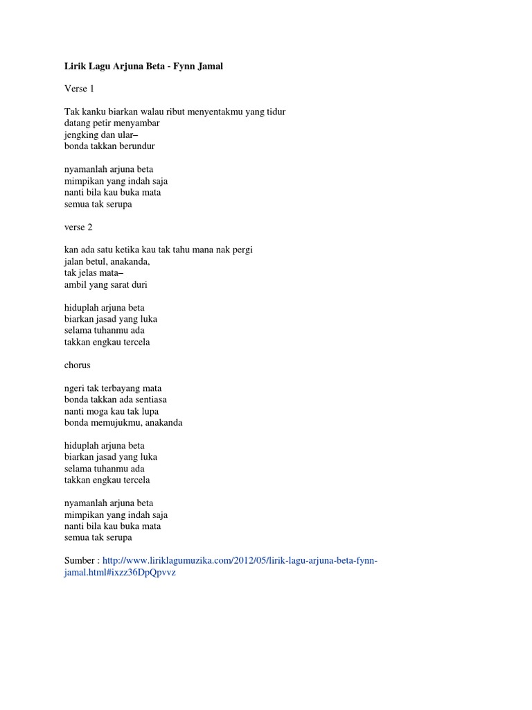 Lirik Lagu Arjuna Beta Fynn Jamal Jamal Html Ixzz36dpqpvvz
