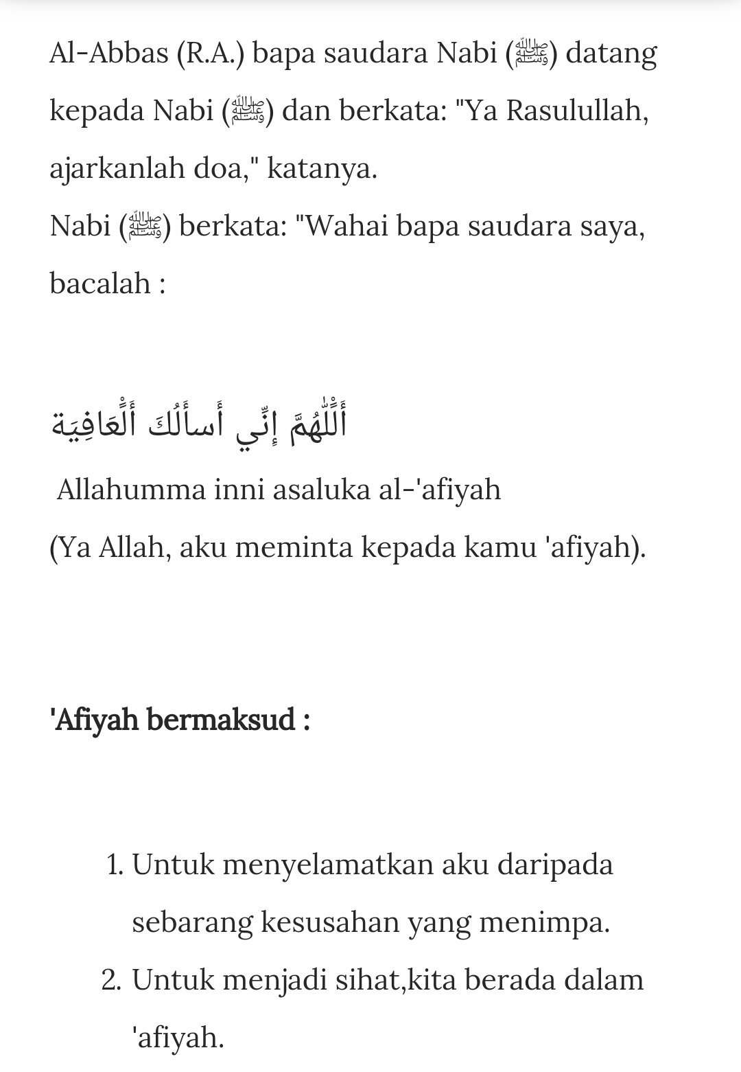 Maksud Doa Allahumma Inni As Aluka Al Afiyah