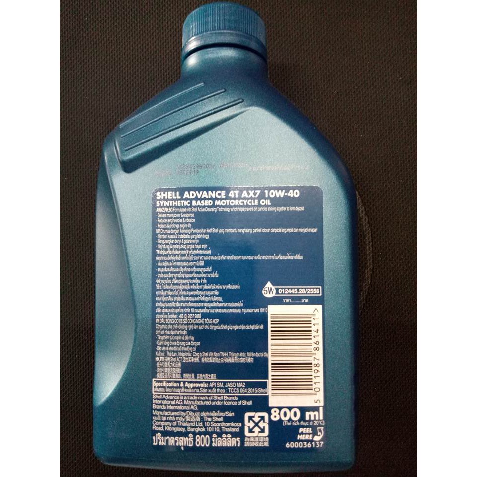 Shell Advance Ax7 10w 40 4t 800ml Synthetic Based Motorcycle Oil