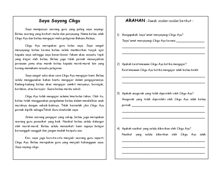 Soalan Bahasa Melayu Tahun 3 Cikgu Ayu