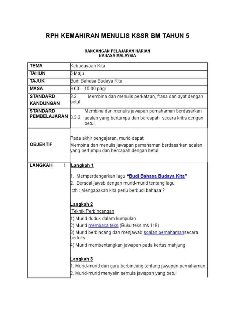 Rph Kemahiran Menulis Kssr Bm Tahun