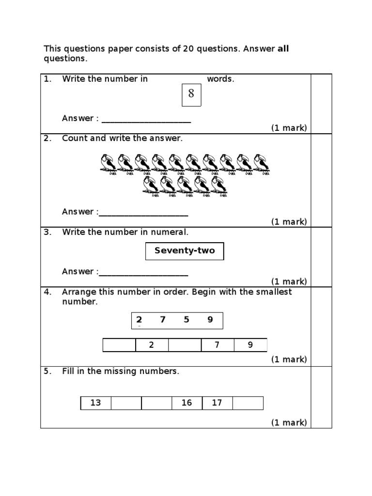 Soalan Matematik Math Paper 2 Tahun 1 Fruit Foods