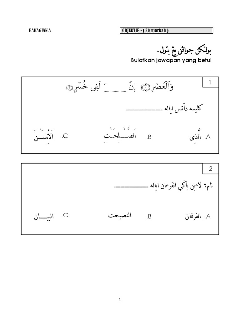 Kertas Soalan Surah Al Fatihah Tahun 1 Google Search