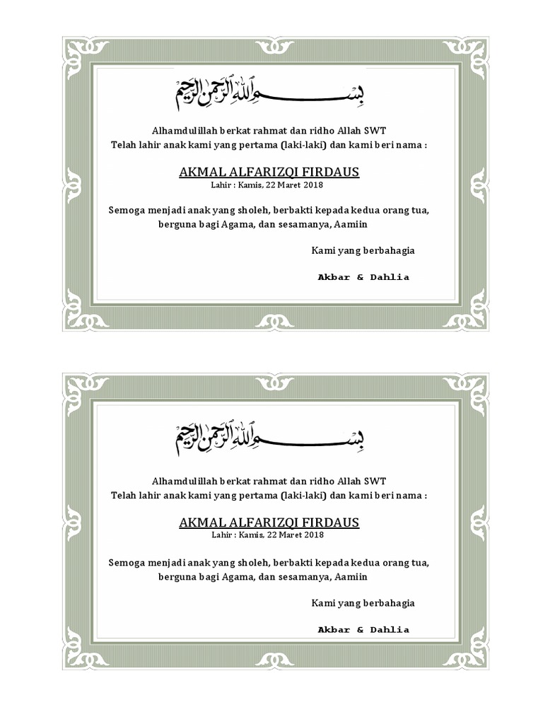 Kartu Ucapan Aqiqah Dan Syukuran Kelahiran Bayi Ruanganbaca